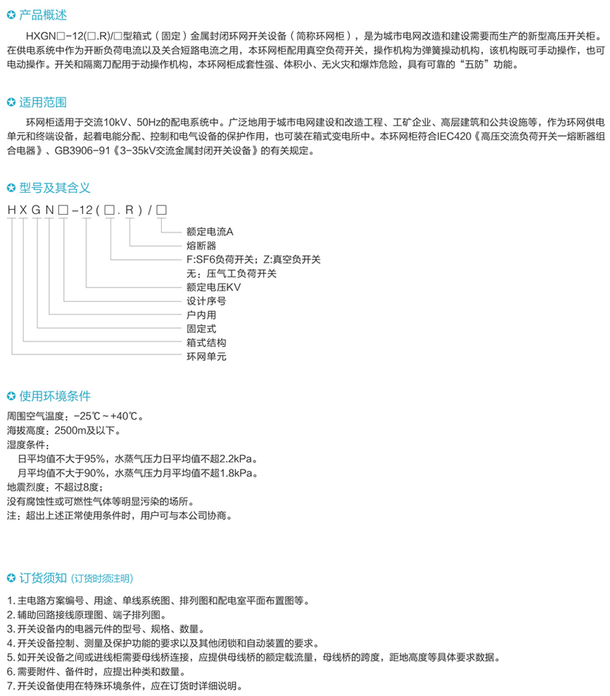 HXGN口-12(口.R)口型箱式(固定)金屬封裝環(huán)網(wǎng)開關設備